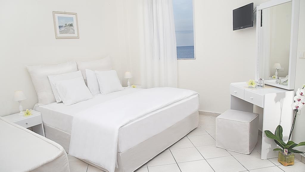 A Petradi Beach fehér bútorokkal berendezett, légkondicionált stúdiója és maisonette lakosztályai bútorozott erkéllyel rendelkeznek. Mindegyikben síkképernyős műholdas TV és mini hűtőszekrény található. A saját fürdőszobában hajszárító áll rendelkezésre.